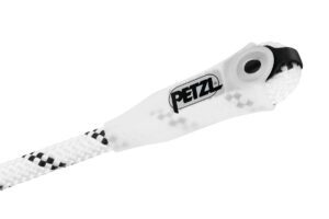 - Die Schutzhülle schützt das Seil gegen Abrieb an rauen Auflagepunkten und erleichtert den Durchlauf des Seils. Bei Befestigung des Verbindungsmittels an der zentralen Halteöse kann die Schutzhülle entfernt werden, um dem Anschlagpunkt so nah wie möglich zu sein.